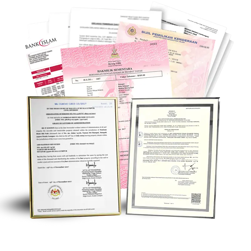 Kami bantu anda urus pusaka, faraid, wasiat, tukar nama geran & pengeluaran duit beku akibat kematian dengan lancar dan mudah.